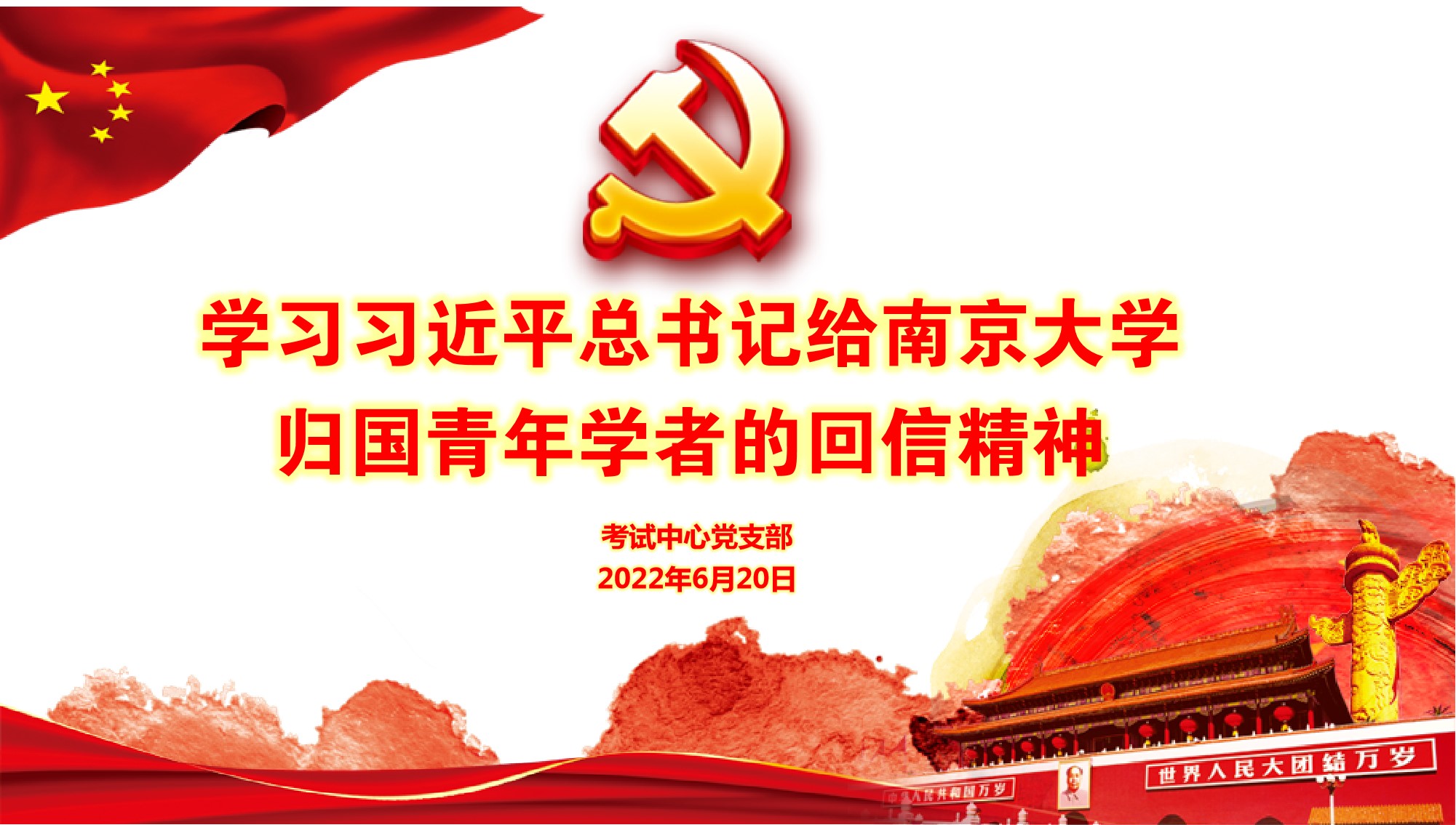 6月20日下午,考试中心党支部在云山208室学习习近平总书记给南京大学留学归国青年学者的回信精神。学习会由考试中心党支部书记尚敏锐主持,党员万丽华领学,支部全体党员参加学习。