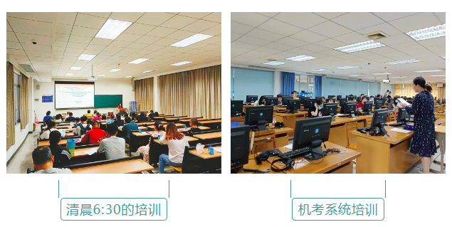 考试当天,清晨6:30,我中心组织了简短的培训会后,全体工作人员各就各位,进行路线指引、安全检查、机位准备等工作,一切有序进行。考试期间,现代教育技术中心、保卫部、教务部、总务后勤处、校医院等部门从组织安排、课室协调、考务实施、技术支持、后勤保障、医疗卫生等多个方面给予了鼎力支持和倾力配合,确保了考试的安全顺利、平稳有序实施。